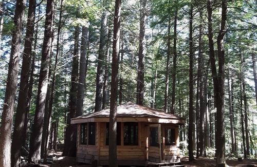 Innisfree features numerous sleeping options for more than 12, including two full cabins, an A-frame, a recreational gazebo as well as campsites to pitch one of our 3 tents. Feel free to bring your own boat (Flying Pond has a public ramp) or use the island’s pontoon boat to make the short 5-minute ride from the mainland, where you will have a private dock as well as a driveway large enough to comfortably accommodate four vehicles.