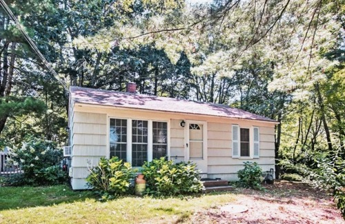 This little cottage is located about 200 feet from the property line and surrounded by woods on all sides. There is very minimal white noise in the deck area from cars on the road. Please note, due to this property being situated in a serene woodsy setting, it might not always be the right choice for people with allergies or lung sensitivity issues. Please consider one of our other properties in the area.