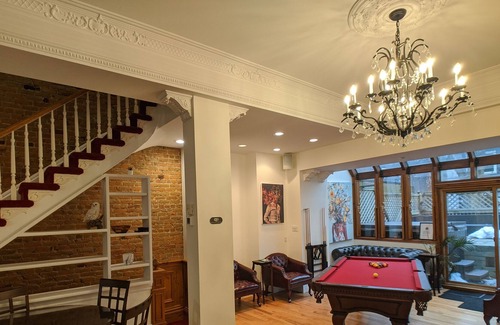 Designed for large groups who want to be close to the action with a fun hub to enjoy between outings. Hot Tub! 2 private parking spaces included! The best of downtown at your door! Walk home from clubs, hockey games, walk to all the big festivals. Comes fully equipped with towels, very comfortable beds & linens, a pool table, cable TV, Hot Tub, BBQ, Authentic NBA Jam Arcade with many other retro games and a swinging king bed in the master bedroom! Back terrace is off limits unless requested and granted before the booking is made.