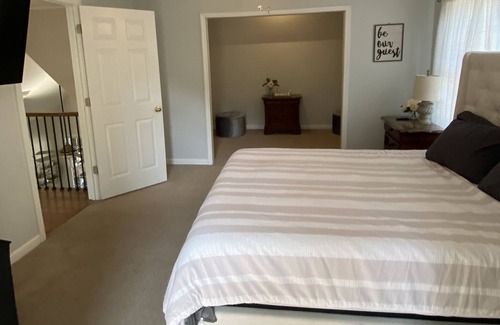 Relax with the whole family at this peaceful place to stay. Nestled in the heart of Georgia this home is 30 minutes outside of Atlanta and spacious enough for the entire family. Furnished with everything you may need this home is ideal for large families and a pool suited for any age!