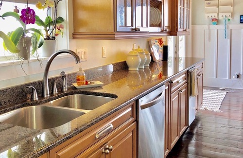 The outdoor deck is almost 2000 square feet with an outdoor dining room table and an outdoor couch and two chairs. All you need for some great family time is all on the property. There is a half court basketball court with a regulation 72” professional glass backboard. There are lines painted on the court for pickle ball and (*Update) we just replaced the pickleball set. Bring your own paddles and pickleballs (or pick up a set at the store) and enjoy a quick game before jumping into the sound for a swim.