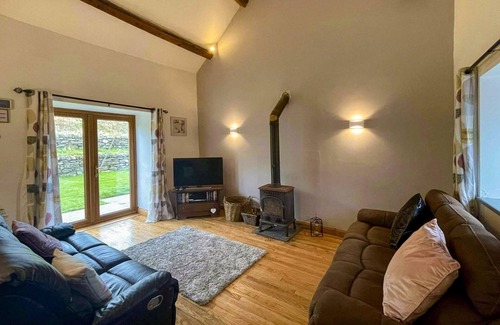 A spacious detached cottage surrounded by stunning scenery with wood fired Hot Tub. 2 steps to entrance.
