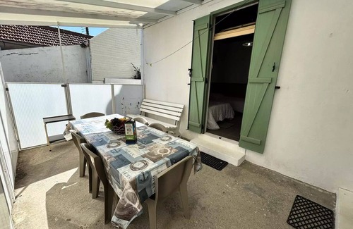 Accommodation: Located 100m from the beach, close to the waterfall area and nautical center, pedestrian street, forest walks and bike paths, this fully-equipped pavilion is ideal for your quiet holiday by the sea. This charming little holiday home includes, a living room with a clic sofa and TV, a double bed 140, a fully equipped kitchen (cooker and electric oven, microwave, fridge/freezer, washing machine and dishwasher), a bedroom with 2 double beds (140), a bathroom with shower, separate toilet.The plus of this seafront rental: covered terrace with table and chairs. Parking in the common courtyard (1 only car authorized). Garden shared back. Household end of stay included.