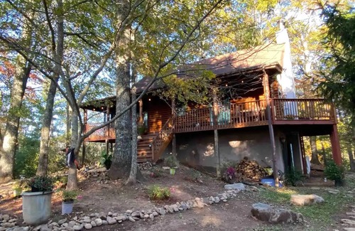 Get away from it all when you stay under the stars, ABOVE IT ALL!This beautifully designed traditional log cabin is the ultimate private retreat, Literally on top of the mountain with private parking and 3 acres of terrain with a fire pit and BBQ grill.