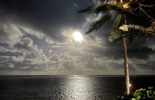This comfortable upstairs rural home offers you the simplicity of island living without sacrificing modern convenience. After a swim in the ocean, relax on your deck where you can watch honu (sea turtles) taking a break at the surface, something you won't find on more crowded sides of the island! If you're lucky, you'll even get a chance to catch whales breaching out beyond the reef at the right time of year. Become entranced while watching the coconut trees swaying in the ocean breeze, perfectly framing your view of the ocean from the deck or living room - like something out of a postcard! Behind you, the Ko’olau mountain range rises into the sky, covered in a lush, green junglescape, where wild boar, peacocks, and birds live freely and mountain streams run untouched. The tranquil setting of this gem of a home truly removes you from the outside world, giving your spirit a place of solace to reconnect and be renewed.