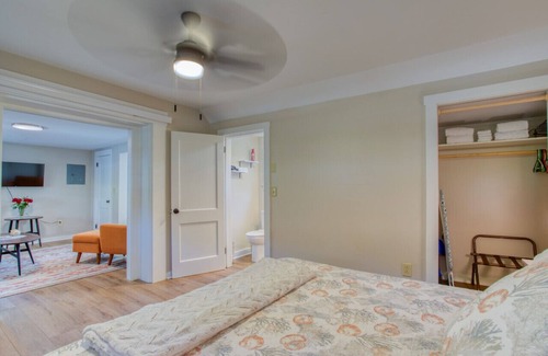 This beautifully decorated one bedroom guesthouse that has everything you need for a perfect getaway. With a prime location in downtown Boothbay, you'll be just steps away from all the local shops and restaurants. The guesthouse features a comfortable king bed, two bathrooms, and a kitchenette for your morning toast and coffee. Catch up on your favorite shows with our smart TV and stay connected with our complimentary Wi-Fi.