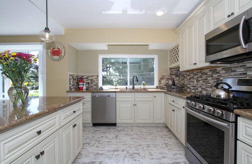 This sweet escape, newly remodeled 2400 sq. feet home comes equipped with 3 master suites. Spacious living room with a great view over the bay and a fun game room. Brand new kitchen with up to date appliances. Master suites are furnished with 1 king bed and 2 queen beds. 7 piece sofa set, enough to seat the whole family. Living room also has an antique fireplace. In this home away from home we offer many amenities which include, flat screen TVs, up date cooking essentials and electronics, a game room equipped with a 55 inch Smart tv, a full size pool table and a twin pullout sofa bed, propane BBQ along with a patio seating area on the backyard terrace. Backyard is a nice private area for the whole family to enjoy. Side deck with a picnic table alongside the BBQ offers a tremendous view of the bay, party boat dock and the beauty of nature and its creatures itself. Parking space is accessible to an outstanding number of 4 cars easily also with RV and Boat parking.