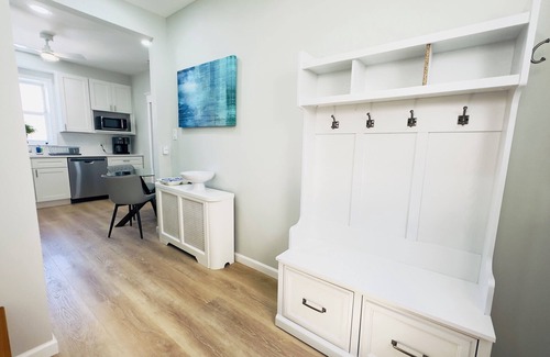 A couple of blocks away, you can enjoy movies on the beach, free concert bands and food trucks - and the weekly Farmers Market at the local church parking lot. This is a 1500 square foot unit which sleeps up to 8 people and has two bedrooms and two full bathrooms, a dining room, living room, full kitchen (microwave, dishwasher, all amenities), laundry room with washer/dryer, air-conditioning units, off-street parking, TVs, DVD player, Wifi, and 4 courtesy beach tags to use. There is a shared deck (both units have access to the deck which has a patio set/BBQ grill to enjoy the nice summer breeze and an outdoor shower)