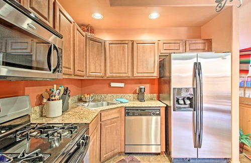 Pack your bags for a scenic desert getaway when you stay at this 2-bed, 2.5-bath vacation rental! This adobe townhome features a private deck complete with an outdoor kitchen and a dining table for easy evenings of al fresco dining and stargazing. Spend your days lounging by the outdoor community pool, hanging out in the clubhouse, or getting a workout in at the fitness center. With picturesque desert hikes and a bustling small-town art scene, there's always more fun at this Arizona escape!