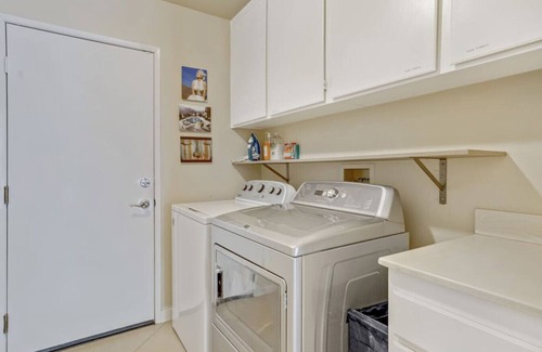 Escape to a tropical paradise in Palm Springs! Included is a private oasis backyard, complete with a heated pool, spa, and a dining area for unforgettable evenings. Enjoy the secluded outdoor space on a quiet cul-de-sac. Inside, a gorgeous retreat featuring a large kitchen, gas fireplace, and two large bedrooms, with ensuite bath in the master. The ambiance is a perfect blend of tranquility and ease, making it the ideal Palm Springs getaway. Experience the comfort and style at your own slice of desert paradise! We do have a gas grill with grilling utensils!