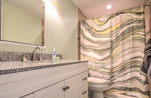 Adorable one bedroom, one and a half bath half duplex overlooking Shelter Bay. Brand new from top to bottom January 2019! Lovely views from your backyard and living area. Very well-kept home that is light and bright. deep water dockage, gas grill, 2 flat screen TVs with basic cable TV. 42" Smart TV in the living room and the other TV in the bedroom is 32". Dishwasher. Hi speed wireless internet service. Master has a queen size bed, and a pull-out couch in the living room.