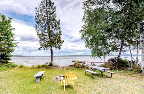 Get that classic cabin feel right on the clear water of Moosehead lake when you call Moosehead Charm your home-away-from-home. As soon as you arrive, you will be blown away by the stunning views, serene acreage, and private beach/dock access that is mere feet from the cabin. Not to mention, the whole gang will be more than ready to play a few rounds of horseshoes or gather around the firepit at sunset. Inside, the fun won't stop, as the eclectic interior is exactly what you want when it comes to a rustic getaway. The high ceilings create an airy feel, wood paneling covered each wall for a cozy ambiance, and the full kitchen is more than ready to whip up a warm meal in no time with a gas range, plenty of dishware, and an adorable farmhouse sink with a built-in drying rack to make cleanup a breeze. The sliding barn doors will give everyone their own privacy, yet everyone can also gather in the living area to watch a movie on the TV when nights come to a close. Don't worry about chilly winter temperatures either, as the wood stove has you covered!