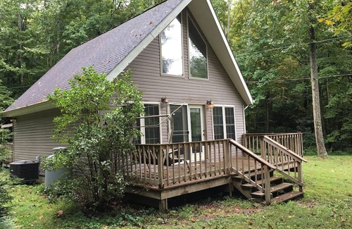 Picture sitting in a hot tub on the back covered porch surrounded by nothing but this sweet sounds ,smells and sights of the deep hilly forest .