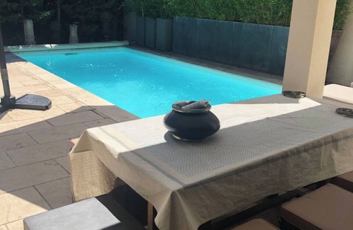 Air-conditioned town house with heated swimming pool is located in Arles. Air-conditioned town house with heated swimming pool provides accommodation, featuring Wellness Facilities, Fireplace/Heating, Guest Services, among other amenities. This House features Wellness Facilities, Fireplace/Heating, Guest Services, to make your stay a comfortable one.