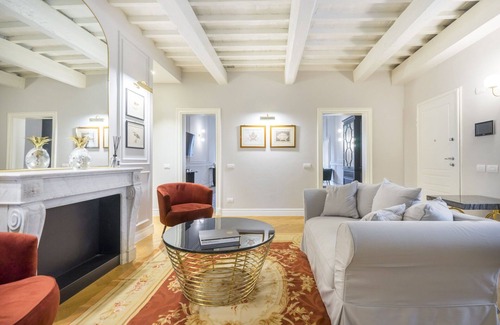 Luxury apartment in the heart of Florence, inside a completely renovated 16th-century historic building, Palazzo Pazzi Vitali, originally owned by a historic Florentine family, offering an extraordinary experience with 16th-century frescoes, 4-meter ceilings and all possible state-of-the-art amenities.
