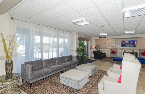 Enjoy your trip with the hotel-vibe being part of the Ramada Inn. Tiki Bar and Grill with Huge heated pool is literally just outside your front door.