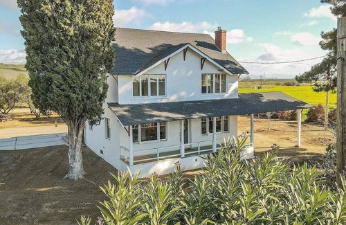 Newly remodeled 1912 farmhouse with California Spanish influences in the custom design. Gorgeous hillside, mountain and orchard views from every room in the house. Walk the 16-acre property, see California quail and lots of birds.