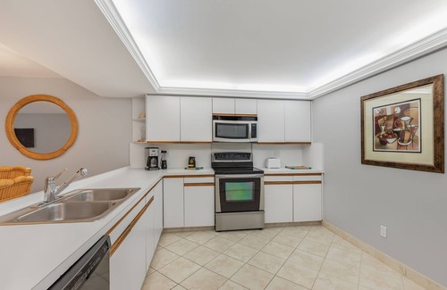 Greeted by an open space filled with comfortable furnishings with nautical décor, this charming abode pulls you into your alternate reality. Enjoy a large, fully equipped kitchen with stainless steel appliances for meal prep that can be enjoyed at the dining table for 4. Occupy the living area for movie and card night as you continue to create your Key West story together. The unit is accessible by an elevator or the stairs.
