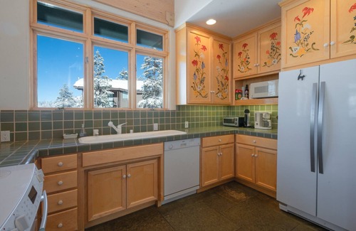 Large windows and french doors frame gorgeous views of Kirkwood’s mountains, meadow and colorful “alpenglow” sunsets.