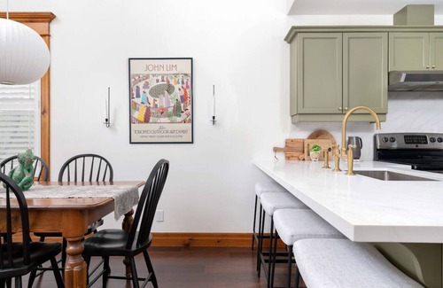 The spacious kitchen includes modern appliances and a dining area with room for 6 to gather. For the warmer months, there is a private balcony with a BBQ and outdoor dining area. With everything you need to prepare your own meals, you can enjoy the flexibility and convenience of cooking during your stay, or enjoy take out from the many local restaurants in Blue or Collingwood.