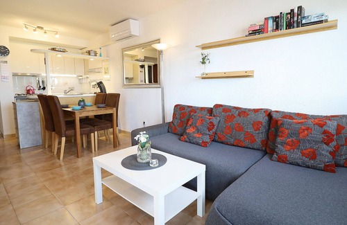 A well-kept apartment with great views, pool, elevator, air conditioning, well equipped kitchen, TV, no parking problems and located in one of the most beautiful bays in the world! The apartment " Badia " is on the third floor and consists of a living room with comfortable sofa bed , satellite TV, well equipped kitchen with microwave, gas stove, washing machine and coffee machine “Senseo”, separate bedroom with a double bed, bathroom and a vitrified terrace. The apartment is equipped with air conditioning. Enjoy a beautiful view at the boats, the port facility and the mountains from the living room, the terrace as well as from the backside of the apartment. GROUPS OF YOUNG PEOPLE UNDER 25 ARE NOT ALLOWED The building has a communal pool, an elevator and is located in a suburb of Roses – called Santa Margarita. That means no parking problems even in high season. The supermarket “Mercadona” is only 300 meters away. You will find more supermarkets within a radius of one kilometer. In a few minutes by car you can reach the long sandy beaches. At the beach" Platja Rubina " you can park even in midsummer. Santa Margarita is different with its navigable canals, in Europe you will find this only here and in Empuriabrava. With NRA: ESFCTU[hidden][hidden]0000000[hidden]-699