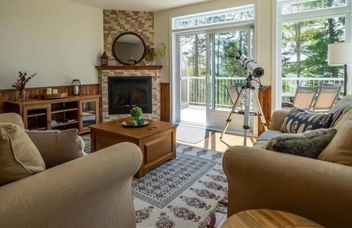 L'Époustouflant - Tastefully decorated, 3-story condo-style cottage at the summit of Val St-Côme, featuring abundant windows and a solarium with magnificent mountain views. Exceptional location 5 minutes' walk from the ski slopes and 150 meters from the Contreforts trail (27 km of trails accessible summer/winter). Quad and snowmobile trails from the house and 25 minutes from Mont-Tremblant regional park, canoeing, rock climbing, fishing, etc...