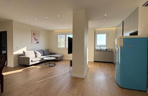This newly designed apartment combines comfort and simplicity with a touch of elegance. Wake up to natural sunlight flooding the rooms and enjoy your morning coffee with a view from above. The living area features a cozy sofa and a Smart TV, ideal for relaxing after exploring Tirana. The open kitchen is fully equipped with all essentials for cooking at home, including a retro-style fridge for a unique touch.