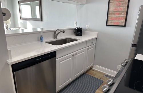 This unit comes with 3 smart TVs (YouTube TV provided), high speed internet, in unit washer and dryer, fully equipped kitchen, a patio overlooking the beach, common area pool, and a stunning view of the ocean right out the front door.