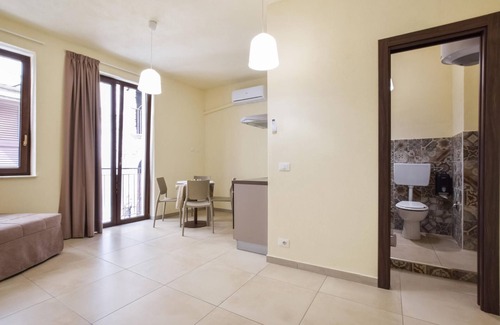 Travel to Patti and stay in this beautiful vacation apartment, one of the Le Muse apartments, in a modern and simple style. As a couple or small family, you can relax here and enjoy the amenities of the beautiful furnishings and equipment. Enjoy the daylight streaming in over breakfast at the dining table and make plans for your next excursions. If you are traveling with friends or other families, you can book additional vacation apartments in the house, depending on availability.