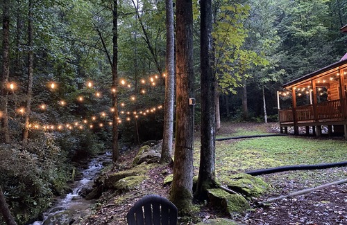 Escape to this charming rustic-luxury log cabin situated beside a cascading creek in the peaceful woods of the Blue Ridge Mountains.