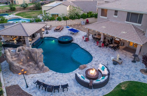 AMAZING "FUN PARK" in BACKYARD Comfortably Sleeps 10 has 5 Bedrooms , 3 Bathrooms, and max occupancy of 14 people. The minimum rental for this property is 1 nights, but this can change depending on the season you plan on staying. Previous guests have given good rated it, and VRBO labeled it a top-rated House because of the excellent services rendered by the owner or manager of this House, and has consistently provided great experiences for their guests. Most families or guests that use it recommend it to their friends and some of them are repeat guests. House has a friendly neighborhood, and the Gilbert has interesting places to visit. If you want to learn more about the House in Gilbert, such as places to visit and things to do nearby, you can check below to learn more.