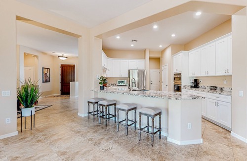 Once you've had your fun exploring the hotspots around town, head back to your home away from home and kick it up on the large patio area with your friends and family with some cold drinks. Fire up the gas grill for some classic American barbecue or cook up something delicious in the full kitchen using the appliances provided. This home boasts plenty of space in the living area for comfy living and relaxing with your loved ones. As the night comes to a close, gather around the couch and stream some of your favorite movies with some buttered popcorn.