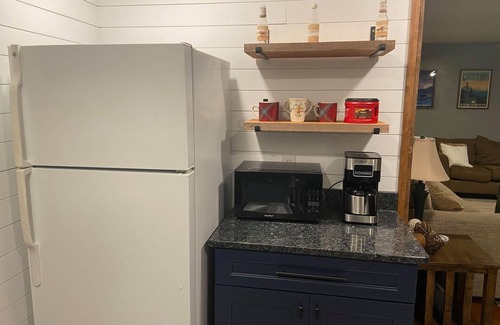Our open floor concept provides ample space in the living room and kitchen, creating an inviting atmosphere. The kitchen is fully equipped with all the essentials, from pots and pans to spices and condiments. The home has 2 bedrooms with a queen size bed in one room and twin beds in the second room. We have 1 full bath, as well as laundry access. The outside provides a breathtaking view of the surrounding mountain range.