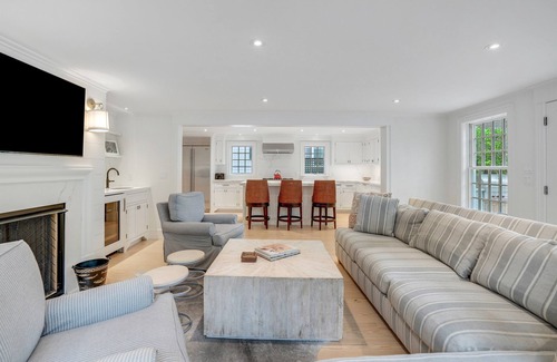 The Connaught House is nestled in the heart of Edgartown Village on the Captain's Row section of North Water Street, this exquisite Captain's House Compound, complete with a Carriage House and pool, offers an unparalleled luxury experience. It is like your very own private resort. The beautifully renovated home spans three floors, seamlessly blending indoor and outdoor living spaces, allowing each person in your party to have their own favorite place for relaxation, poolside fun, or even (gasp) work.