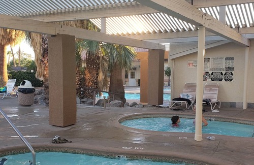 Amazing place in Sky Valley resort has 1 Bedroom , 1 Bathroom, and max occupancy of 4 people. The minimum rental for this property is 1 nights, but this can change depending on the season you plan on staying. Previous guests have given good rated it, and VRBO labeled it a top-rated House because of the excellent services rendered by the owner or manager of this House, and has consistently provided great experiences for their guests. Most families or guests that use it recommend it to their friends and some of them are repeat guests. House has a friendly neighborhood, and the Desert Hot Springs has interesting places to visit. If you want to learn more about the House in Desert Hot Springs, such as places to visit and things to do nearby, you can check below to learn more.