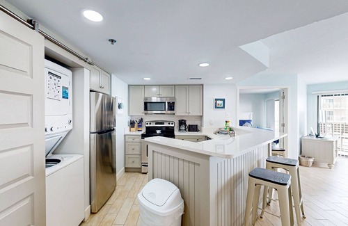 Gather together in the kitchen and the breakfast bar to prepare and enjoy a home-cooked meal. You'll have clean clothes always with the concealed washer/dryer found in a closet across from the kitchen. You can relax with a good movie on the cable-equipped TV and entertainment center in the spacious living area. You'll also enjoy the free WiFi service, enabling you to stay in touch with friends and family.