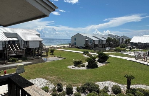 Ocean Mile J9 has two private sun decks, one located on the second level for the Queen Bedroom and the other on the third level for the King Suite to grab those warm, relaxing salt breezes and views of both the Gulf and Bay! Another sun deck is just off of the main living room which is also furnished and provides access to the boardwalk system to give you easy access to the pool and beach! (This pool is not heated). There is a pet/child gate located in the down stairs pantry closet if needed for added safety.
