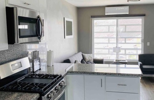 Apartment in ensenada is located on 4th floor excellent location 3 Beth rooms with queen bed mini splits A/C And heating two bathrooms complete kitchen with all utensils has netflix and dish wifi and washer and dryer and private parking for 2 cars and 24 security has 3 cameras that will be recording for parking corridors for greater security.