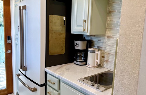 With all the charm in the world, you feel like you are staying in a storybook cottage. Attention to every detail throughout this home, and a serene backyard. It has two bedrooms, one bath, a full kitchen inside and outside. Take the small beach wagon and walk to the public beach during the day, or across the parking lot to the pickleball courts, check out your local library, or play at the park. You can spend each day walking to a new local restaurant, coffee shop, brewery, winery or antique shop. This is the perfect opportunity for anyone looking to spend a few weeks or months living their best Florida life. We have a two week minimum, but are certain you will want to stay longer. We look forward to hosting your perfect beach vacation.