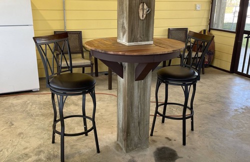 Our Lake House is located on a private canal on Big Lake Calcasieu and at the edge of the Sabine Refuge in a friendly and safe neighborhood. Wake up and watch a spectacular sunrise down the canal while enjoying your morning coffee and the morning breeze on a spacious screen porch. Located in Anger Bay it’s only a 20 minute drive to the coast, five minute drive to a grocery store, and twenty five minute to a casino. You can crab off the bulkhead in the backyard, park your boat at the dock, and clean the days catch in a screened fish cleaning room located in the boat house. This 4 bedroom and 2 bath open floor plan home has been freshly painted and has a well stocked kitchen. Granite counter tops, appliances, full size washer and dryer, and Direct TV are just a few of the amenities. Downstairs is a screened porch with ceiling fans, 2 outdoor TVs, refrigerator/freezer for beverages/food/storing your catch of the day, outdoor games, and BBQ pit. There is plenty of parking and a fenced yard. Corporate leasing available and fishing guide references available.