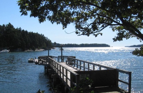 The downstairs living room has beautiful & comfortable seating, a large picture window & the TV/VCR/DVD. Off this is the double bedroom with private bath. Upstairs the great room has a mix of antique & new furnishings where you can enjoy the cd stereo & the panoramic view of boats, islands and spruce trees thru huge French doors that lead out to the 2nd floor deck. The kitchen is large, bright & well equipped. The master bedroom has a stately queen antique four-poster bed & the main bath has the jacuzzi tub, separate shower & skylights. Upstairs the protected loft holds two comfortable twin beds. It is a truly beautiful & restorative vacation home. Although there are beds for more people, we are limiting the number of Guests to a very strict 4 people. This way you can choose which of the bedrooms would best suit you, and will assure you of many years of a wonderful vacation in a well appointed and carefully kept home