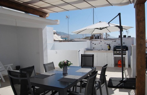 Beautiful, recently restored village house in the old part of Nerja just a 7 minute walk away from the Balcon de Europa and the local beaches, as well as all the local attractions.Located in a pedestrian street the house is laid out as follows:On the ground floor there is a spacious, modern fully equipped kitchen (fridge freezer, dishwasher, washing machine, induction hob, oven plus all necessary kitchen equipment) open to an equally spacious living- dining room equipped with an extendable dining table, with capacity for up to 6 people , plus a comfortable sofa .There is also a pretty interior patio on this floor that lets in an abundance of light as well as a bathroom with shower. On the first floor we find a smaller lounge which is equipped with a large smart TV offering a large selection of channels , in addition , there are two double bedrooms , both equipped with two beds that are joined , resulting in a large bed of 1.60 x 2.00m plus a cloakroom . Via an external staircase on the second floor you have access to a beautiful roof terrace with mountain views that is equipped with a table for six people, plus two sun loungers. There is a small pergola and a large sun umbrella that allows for sun or shade throughout the day. We also find an outdoor kitchen that is equipped with a gas BBQ, small fridge and a sink and a shower where you can cool off. The house has Wi-Fi and air conditioning in all rooms.BOOK YOUR AIRPORT TRANSFER WITH USWe offer taxi/minibus transfers from Málaga airport to Nerja at set rates (no taxi meter).All of our drivers know Nerja and our properties, they will collect you at the airport and will have the keys to your accommodation. Book with us for an easy and stress free service.
