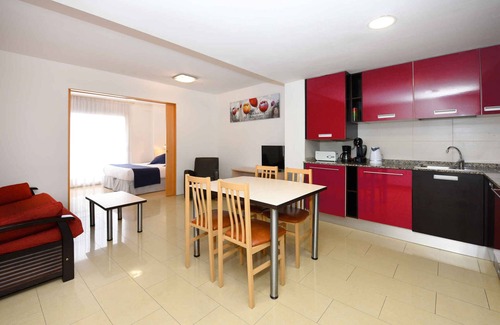 The hotel apartement is furnished in a modern and functional style. The hotel complex is located in the town centre. Also due to its sunny location the domicile is popular. Available for use: parasol, sun lounger, terrace and garden furniture.LocationCalella de la Costa. The apartment is located in a hotel complex. Access is via a side road (asphalted). Specialair conditioning.Facilities: internet access (WLAN). TV reception takes place via satellite. PoolOutdoor pool. WellnessIn the complex: solarium. Leisure4 bicycles. Dogsallowed. Free of charge. DistancesShopping 450 m, restaurant 350 m. doctor in Calella 550 m. In summer: Balearen Meer 650 m in Calella (beach 650 m in Calella featuring sand). DivisionApartement, 1 floor, 2 rooms (including 1 bedroom), 35 sqm, in total 4 beds. RoomThe entrance to your apartement leads directly into the living room. Living room (walk-through room) with 2 single beds, sitting area, TV and dining area. Bedroom with 1 double bed. Cooking nook in the living room with fridge, microwave, coffee machine, toaster and electric kettle. Bathroom with bathtub, washing machine, shower and WC. Terms of lease and pricesIncluded in the priceair conditioning, electricity, gas, water, final cleaning, local tax (under 16 years), bed linen, hand towels, pool (30.04.25-30.10.25, 29.04.26-29.10.26), parasol at the beach, Wireless Internet access. Side costs-Costs on the spot:/Obligatory:final cleaning (if not performed by the tenant) 40 € per object per stay. local tax by local tariff (if charged).On request:baby cot 10 € per bed per day. parking place 15 € per car per day. safe 6 € per object per day. cleaning (daily) 15 € per object per day. wellness 25 € per person per hour. For a fee: bicycle, solarium.Deposit:EUR 100,-/object