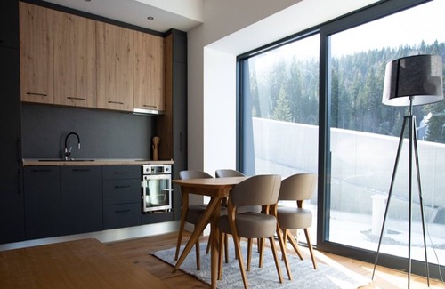 Ekskluzivno opremljeni enterijer podređen vašim potrebama sa zasebnom spavaćom sobom i dnevnim boravkom sa sofom na razvlačenje, te opremljenom kuhinjom. Očarati će vas svojom udobnošću i prekrasnim pogledom na planinu. U apartmanu mogu boraviti do 4 osobe.