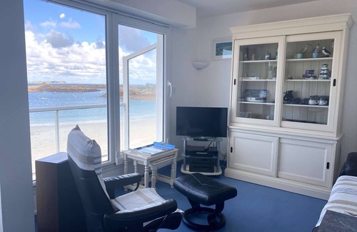 Panoramic sea view, on the most beautiful sandy beach of the Pink Granite Coast «la Grève Blanche». Change of scenery assured...
