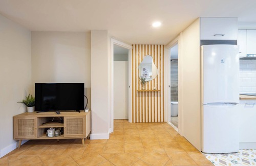 Situated in Vigo, the holiday apartment Almar with step-free interior is just a short walk from the beach. The 70 m² property consists of a living room with a sofa bed for 2 people, a well-equipped kitchen, 2 bedrooms and 1 bathroom and can therefore accommodate 6 people. Additional amenities include high-speed Wi-Fi (suitable for video calls) with a dedicated workspace for home office, a TV, air conditioning as well as a washing machine. A baby cot is also available. This vacation rental offers a private outdoor space with a garden and terrace.