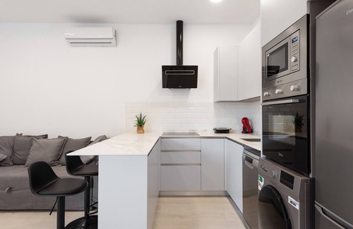 The holiday apartment Apartamentos sealmar 2 with step-free interior is located in Malaga and is the ideal accommodation for a relaxing getaway. The 50 m² property consists of a living room with a sofa bed for 2 people, a well-equipped kitchen, 1 bedroom and 1 bathroom and can therefore accommodate 4 people. Additional amenities include high-speed Wi-Fi (suitable for video calls) with a dedicated workspace for home office, a smart TV with streaming services, air conditioning as well as a washing machine.