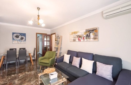 Spacious and bright house with two bedrooms, one double and one single with two beds, living room with sofa bed, fully equipped kitchen, a large bathroom with natural light, laundry and interior patio. Heating and air conditioning in living room and both bedrooms.