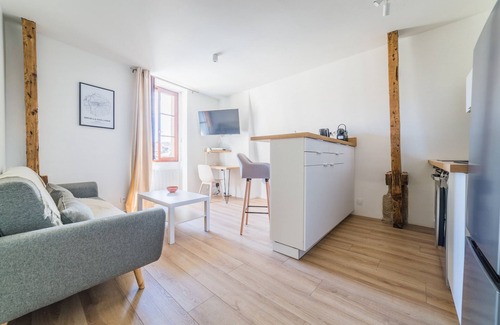 Nestled just 2 steps away from the famous Georges Brassens Hall, a key location for culinary heritage (market, Fat Fairs) and cultural events (Book Fair) in the Gaillarde city, this apartment with delicate charm offers you 30 m2 to relax and recharge in peace.Its large bathtub awaits you to lounge after a day of work or wandering.An American kitchen with its living room and office corner completes this cocoon to offer you a well-deserved break in Brive lands.Access: 2nd floor, no liftSleeping: 1 double bed (160 cm)Household equipment: open kitchen (ceramic hob, oven, refrigerator, coffee maker, washing machine, cookware, dishes and cutlery)Multimedia equipment: flat-screen TV, free WIFI internet accessLocation: close to city centre, next to Halle Georges Brassens, close to all shops.Bus line nearby.Free parking space (2 hours) nearbyBook this apartment with Séjour à Brive, it's the assurance of a serious and professional team at your service.All our rates include:- towels and household linen,- free WIFI,- apartment cleaning before your arrival,- charges (electricity, gas, insurance),- technical assistance during Séjour à Brive opening hours,- autonomous arrival thanks to a secure KEYBOX.IMPORTANT NOTEPlease have the following documents ready for your registration:- Valid credit card used for the booking- Identity card or passport (for foreigners)For confidentiality reasons, we cannot guarantee access to the room for the accompanying person whose name is not on the confirmation without the presentation of these documents.Please note that our accommodations are not equipped with condiments, food products (salt, pepper, oil, etc.), or toiletries such as soap. Remember to bring what you will need for your stay.Coffee maker type: Nespresso
