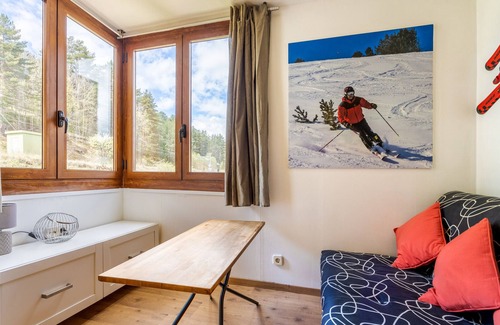The holiday apartment "Enmolinate" is located in La Molina, and boasts mountain views. The approximately 30 m² one-room property has a living room with a sofa bed, a well-equipped kitchen, 1 double bed, and 1 separate bathroom, and can therefore accommodate 3 adults or 2 adults and 2 children. Additional amenities include television, heating, washer and dryer.